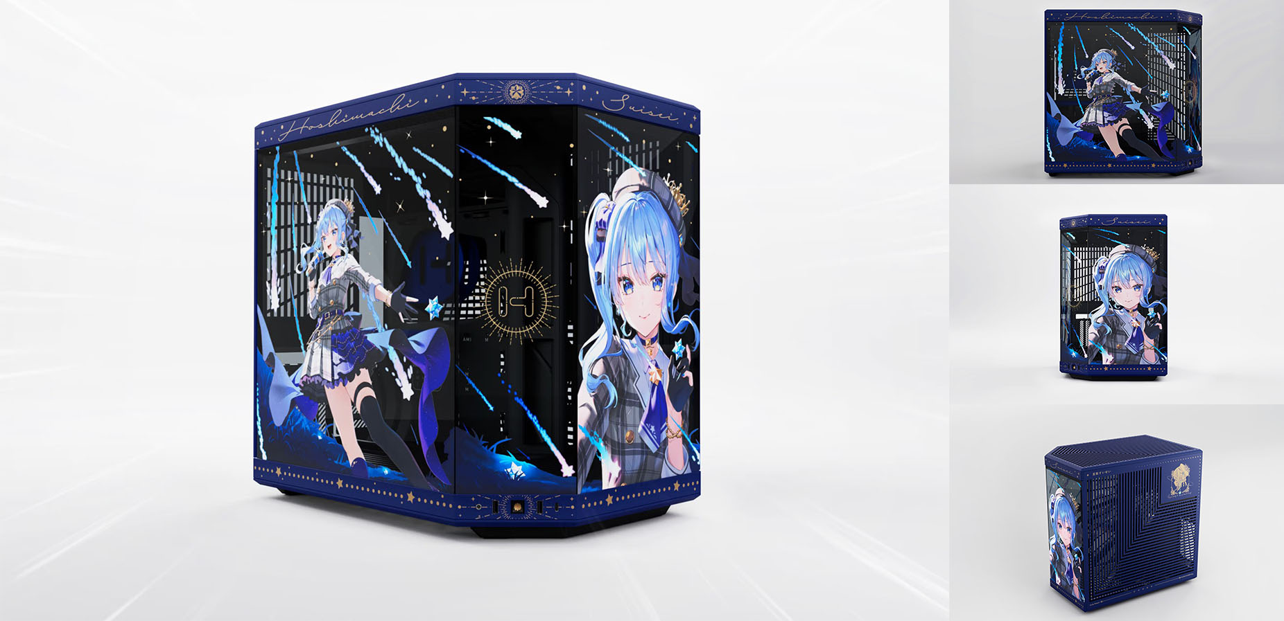 Se você está se preparando para sua próxima grande construção ou um fã do primeiro dia procurando expandir sua coleção, este gabinete iluminará sua configuração com uma variedade estrelada de designs lindamente personalizados de seu oshi favorito. Exiba a elegância atemporal de Hoshimachi Suisei com um índigo personalizado Y70 com elementos de design exclusivos, como: