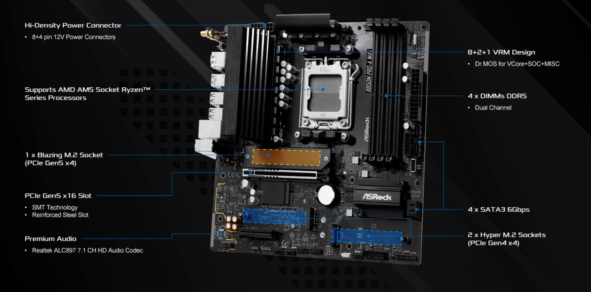 - 1 x Socket Blazing M.2 (M2_1, Key M), suporta o modo tipo 2280 PCIe Gen5x4 (128 Gb/s)