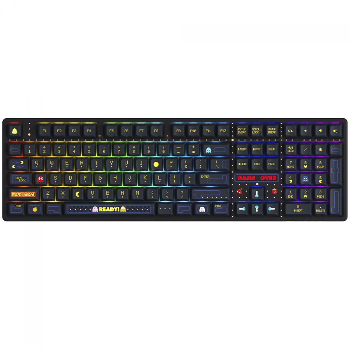 Teclado com fio para jogos. Interface USB banhada a ouro. Interruptores Akko CS Crystal. Retroiluminação LED RGB. Cobertura ABS de três camadas. Moldura fina. Estabilizador Akko Double Shot TPU. Interruptor de 5 pinos. Retroiluminação RGB. Altura ajustável.